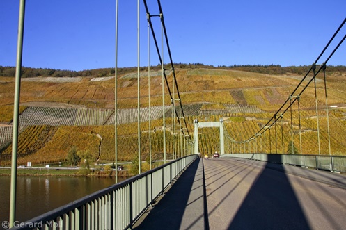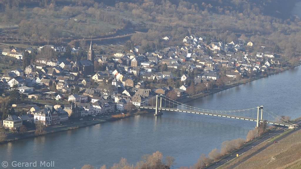 Der am linken Moselufer liegende Ort Wehlen ist ein Stadtteil von Bernkastel. Die einzige Hängebrücke über die Mosel verbindet ihn mit Graach.