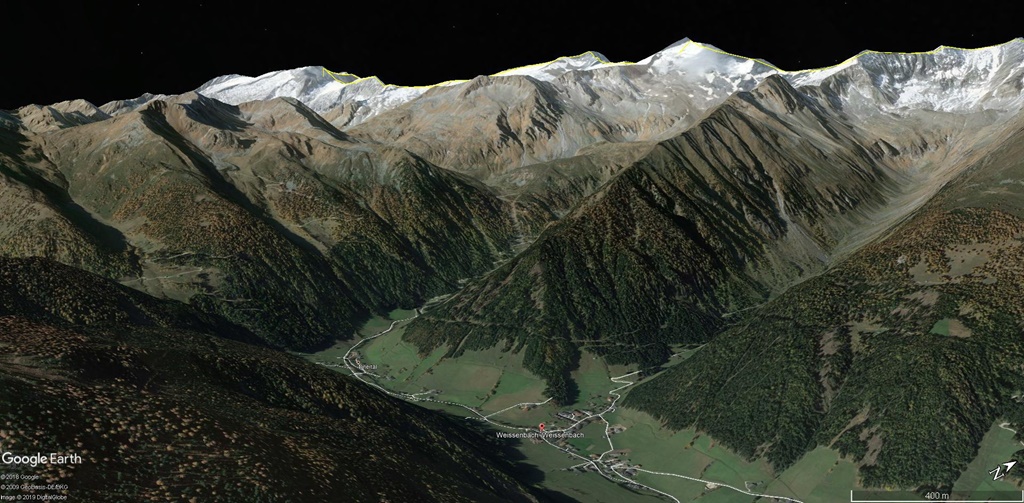 Weissenbach liegt im Weissenbachtal, einem Nebental des Ahrntales.