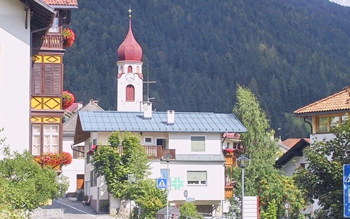 Bild in Lightbox öffnen (open image in lightbox). Die Pfarrkirche Ingenuin und Albuin in Welschnofen.