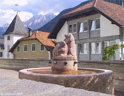 Bild in Lightbox öffnen (open image in lightbox). Der aus einem mächtigen Porphyrblock gemeißelte Murmeltier-Brunnen ist einmalig in den Dolomiten.