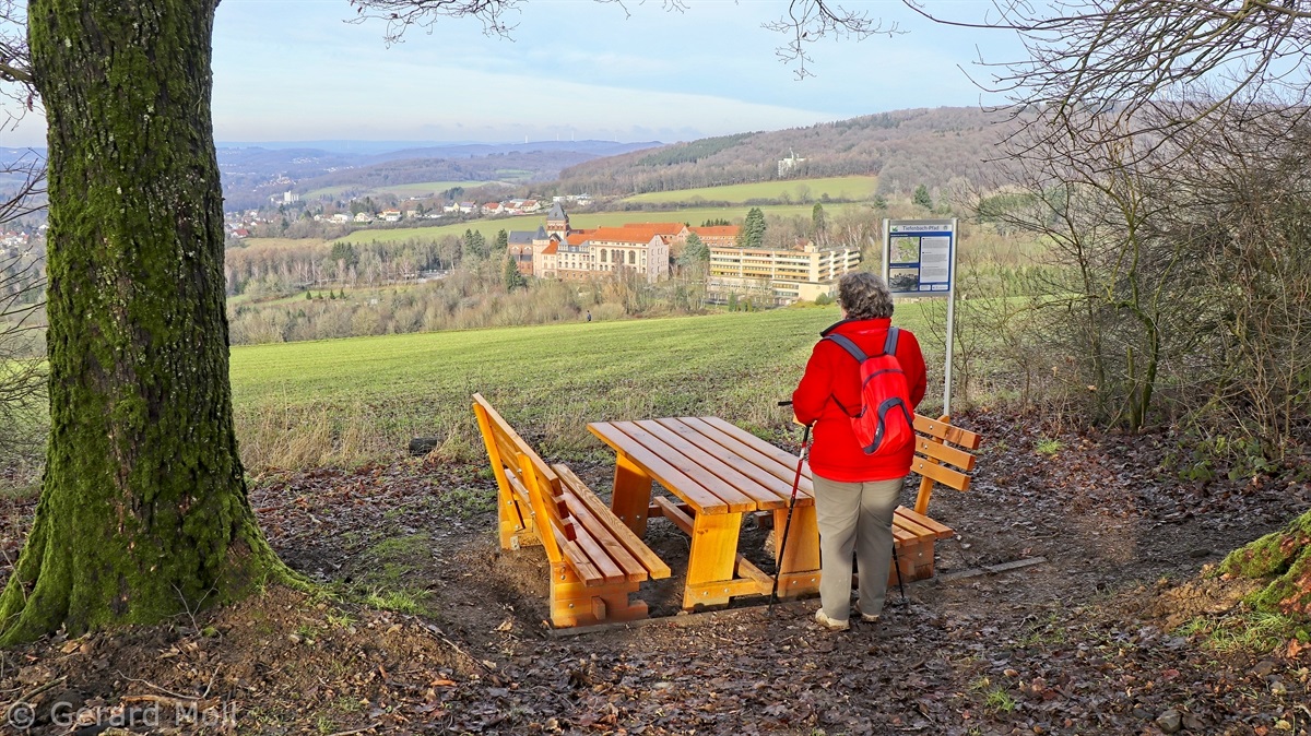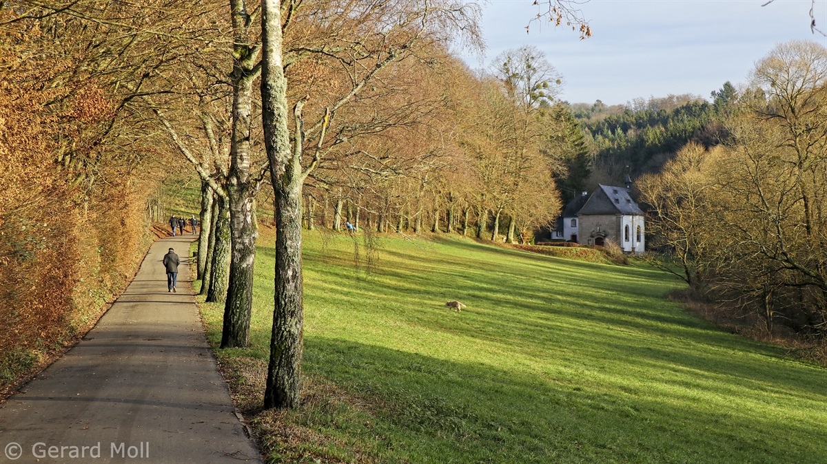 Unser Ausgangspunkt war das grosse Missionshaus oberhalb von St. Wendel. Erste Station ist der Wendelinushof, danach geht es aussichtsreich über den Fledermauskopf, ehe wir nach St. Wendel absteigen. Nach einer Besichtigung der Basilika folgen wir dem Weg zur Wendelinuskapelle und erreichen wieder das Missionshaus.