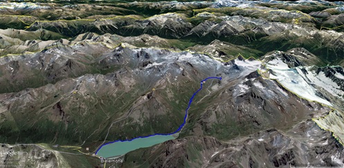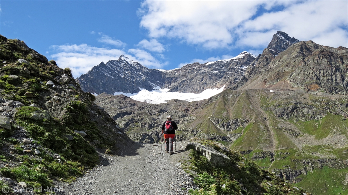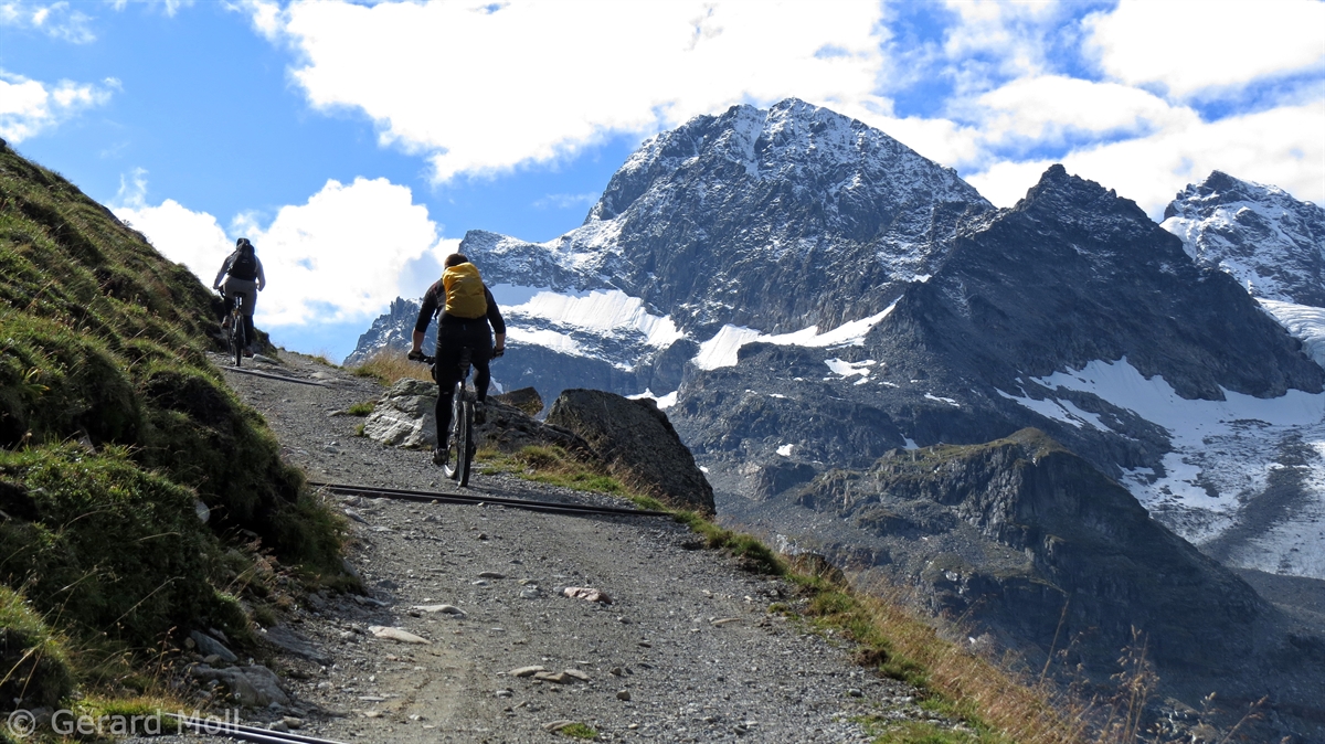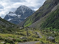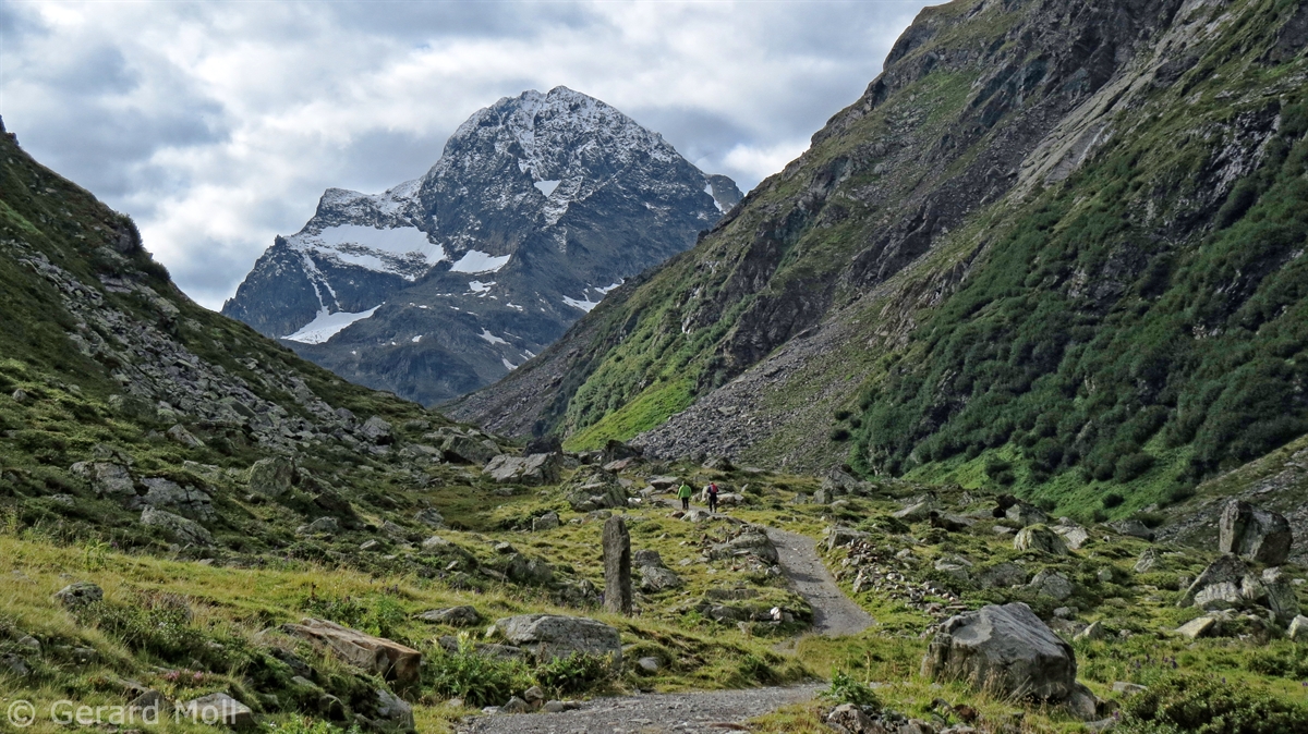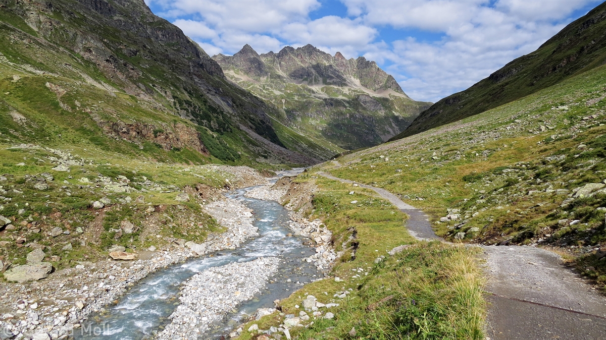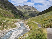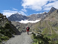 Von der Bielerhöhe führt ein Fahrweg am Silvrettasee vorbei in das Ochsental und zur Wiesbadener Hütte (2443 m). Die Grüne Kuppe (2579 m) bietet einen Einblick in die Tour zum Großen Piz Buin.