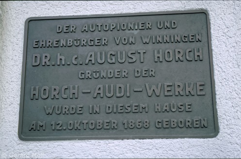 Bild in Lightbox öffnen (open image in lightbox). Gedenktafel am Geburtshaus von August Horch.