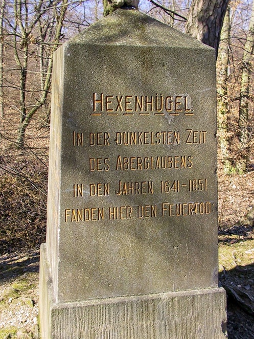 Bild in Lightbox öffnen (open image in lightbox). Der Gedenkstein erinnert an die Zeit der Hexenverfolgungen.