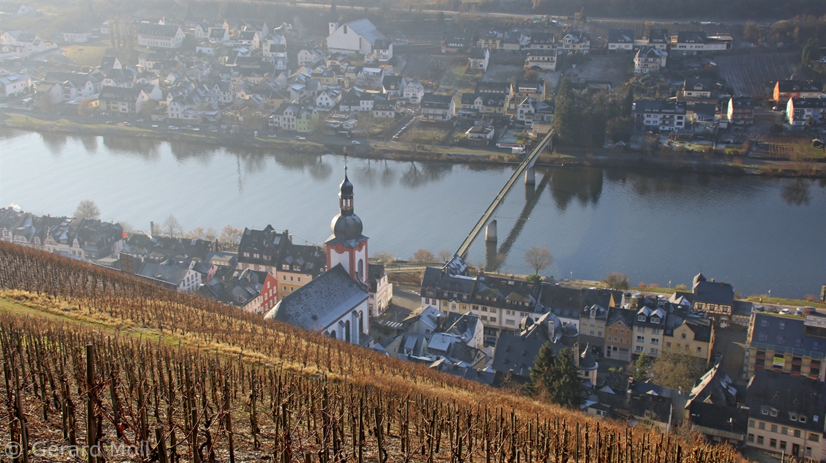 Die Stadt an der Moselschleife Zeller Hamm ist Heimat der Weinreben der "Schwarzen Katz".