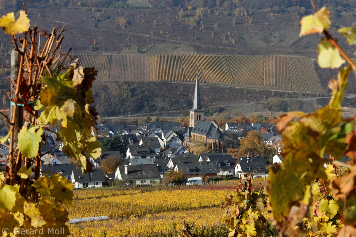 Zeltingen-Rachtig von der gegenüberliegenden Moselseite.