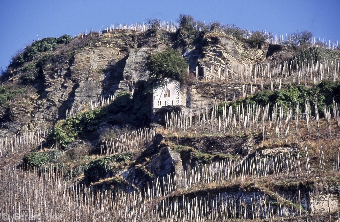 Bild in Lightbox öffnen (open image in lightbox). Die Zeltinger Sonnenuhr in den Weinbergen.