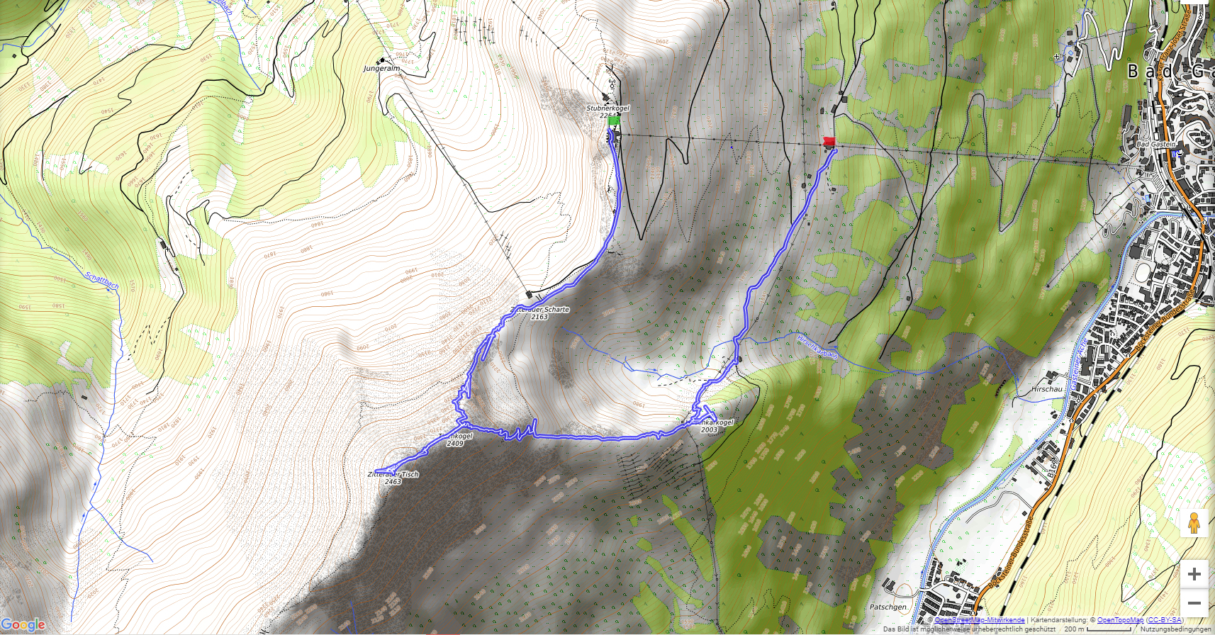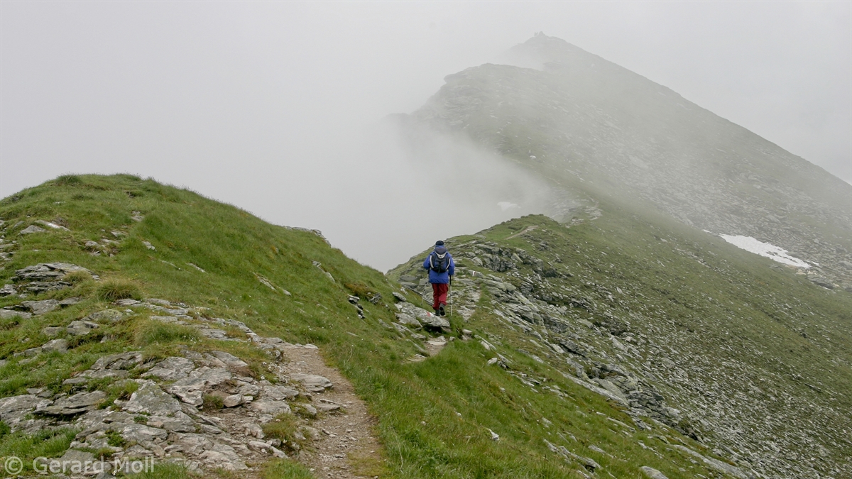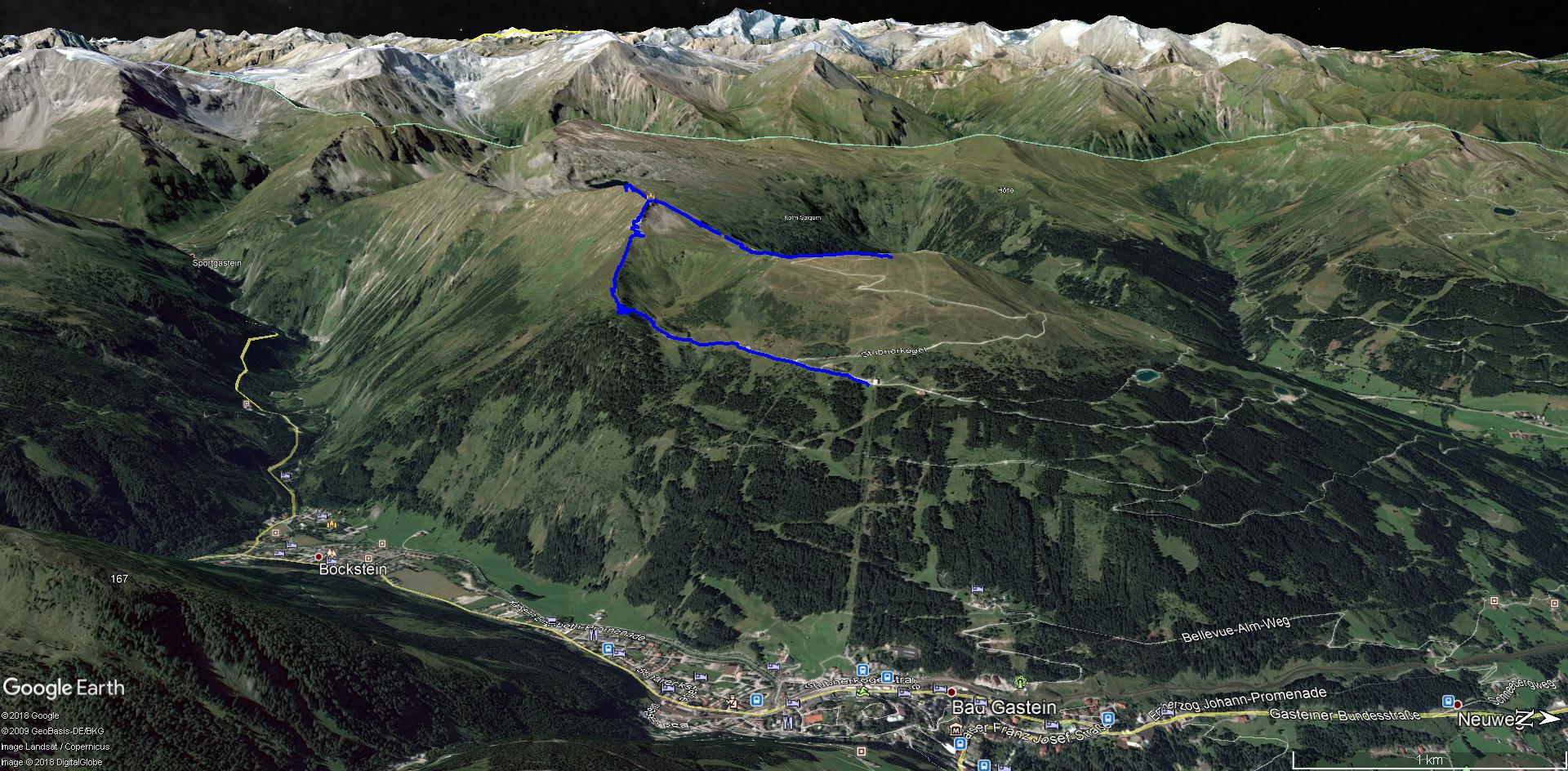 Die Seilbahn bringt uns von Bad Gastein auf den Stubnerkogel (2228 m). Von hier ist der Tischkogel (2409 m ) schnell erreicht, und auch zum Zitterauer Tisch (2463 m) brauchen wir nicht lange. Aufgrund des unsicheren Wetters gehen wir zurück über den Tischkogel und steigen zur Mittelstation der Seilbahn ab.