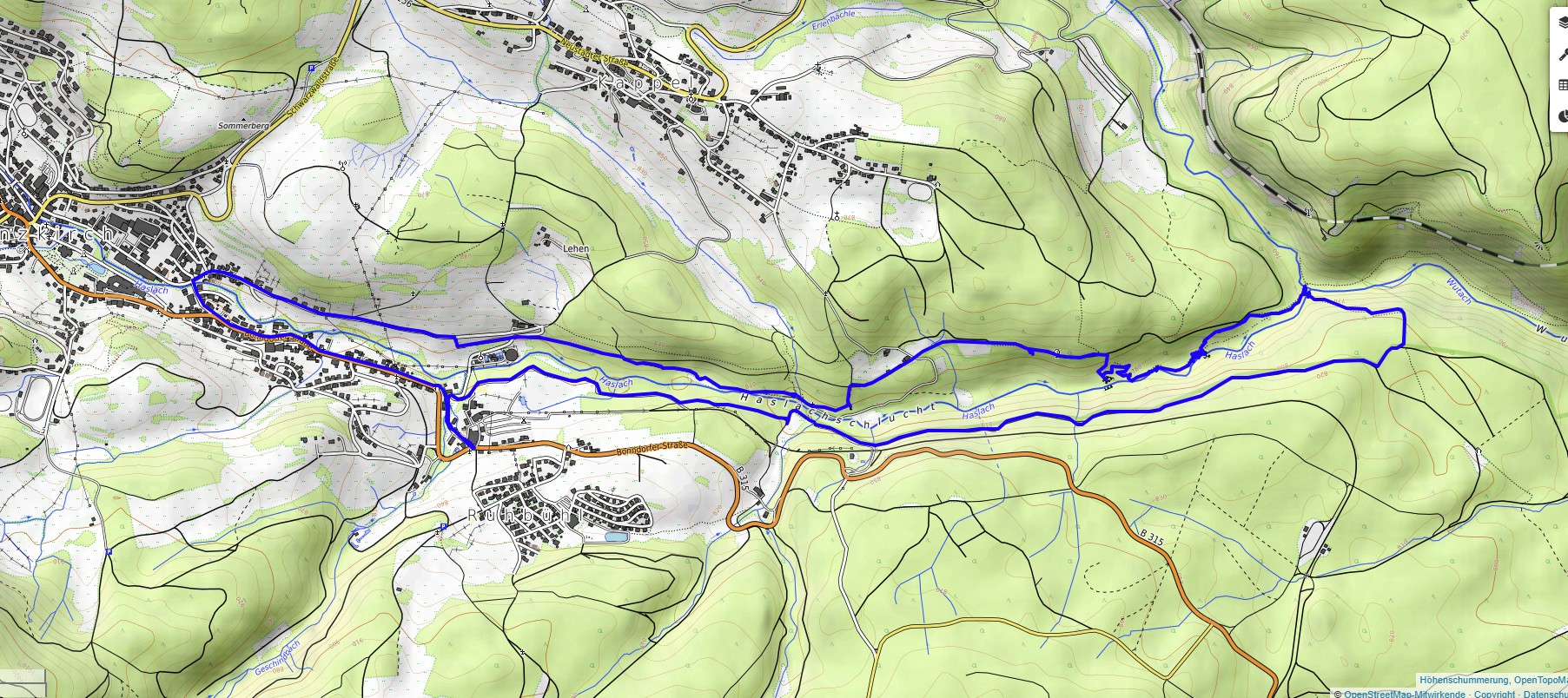 Wir starten nahe dem Campingplatz Kreuzhof in Lenzkirch und folgen zunächst dem Bähnle-Radweg vorbei an dem interessanten Klausenbach-Viadukt. Dann geht es hinunter zum Zusammenfluss von Haslach und Gutach, die ab hier gemeinsam als Wutach weiter fließen. Der Rückweg führt durch die Haslach-Schlucht, wir kommen an dem beeindruckenden Rechenfelsen vorbei, nach dem Höllochfelsen erreichen wir den früheren Bahnhof Kappel-Grünwald und kehren nach Lenzkirch zurück.