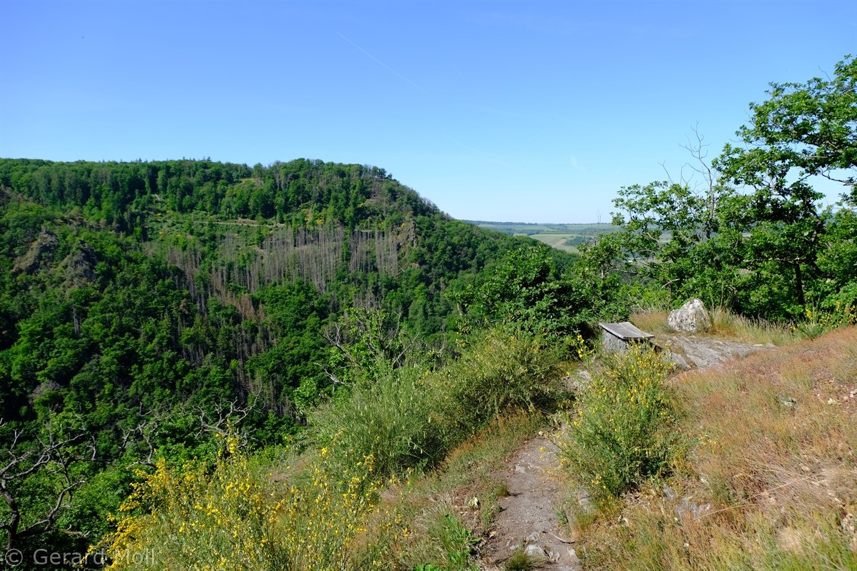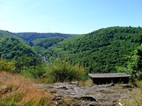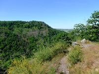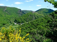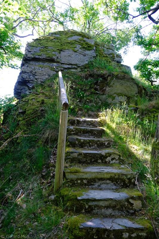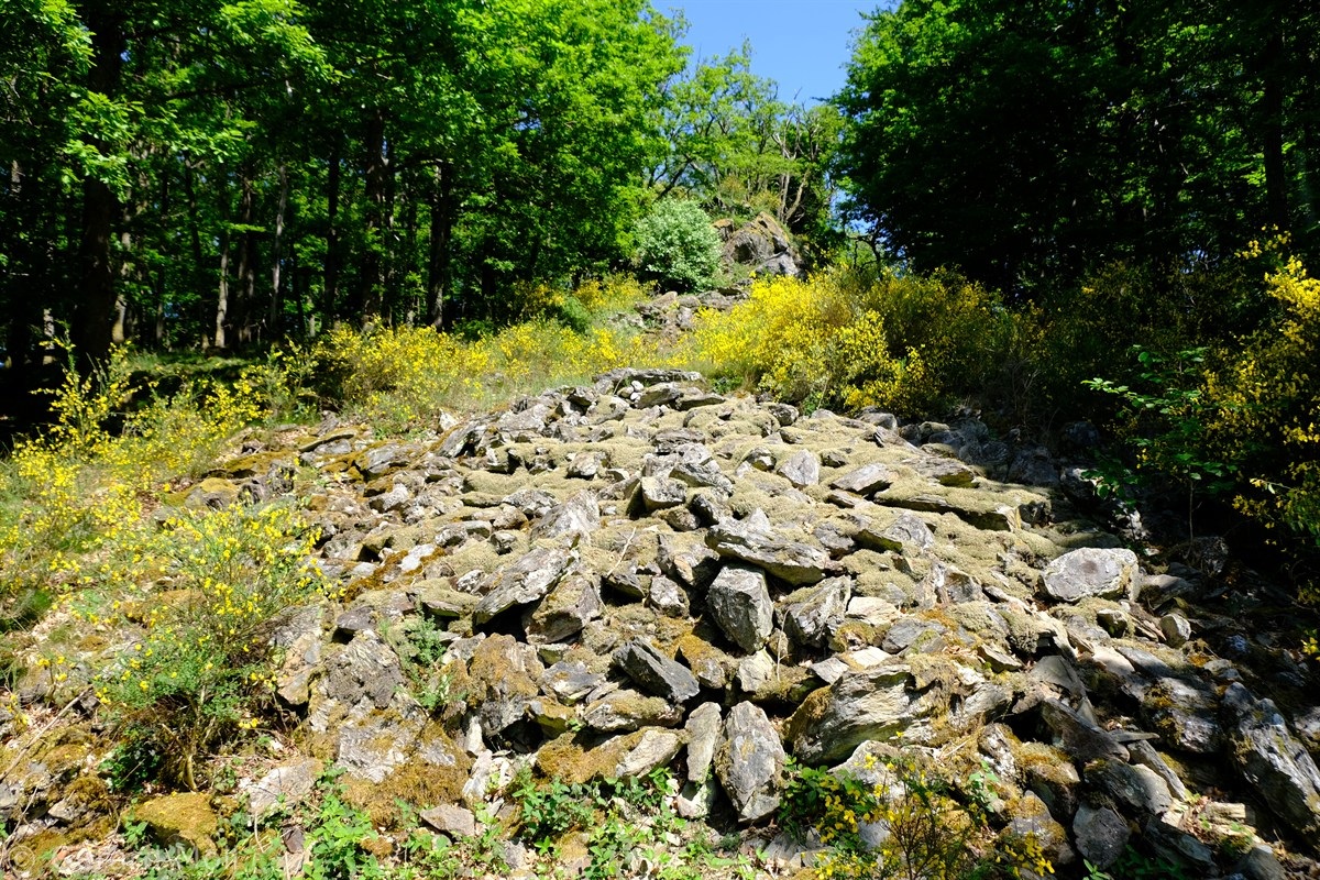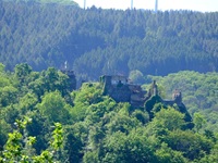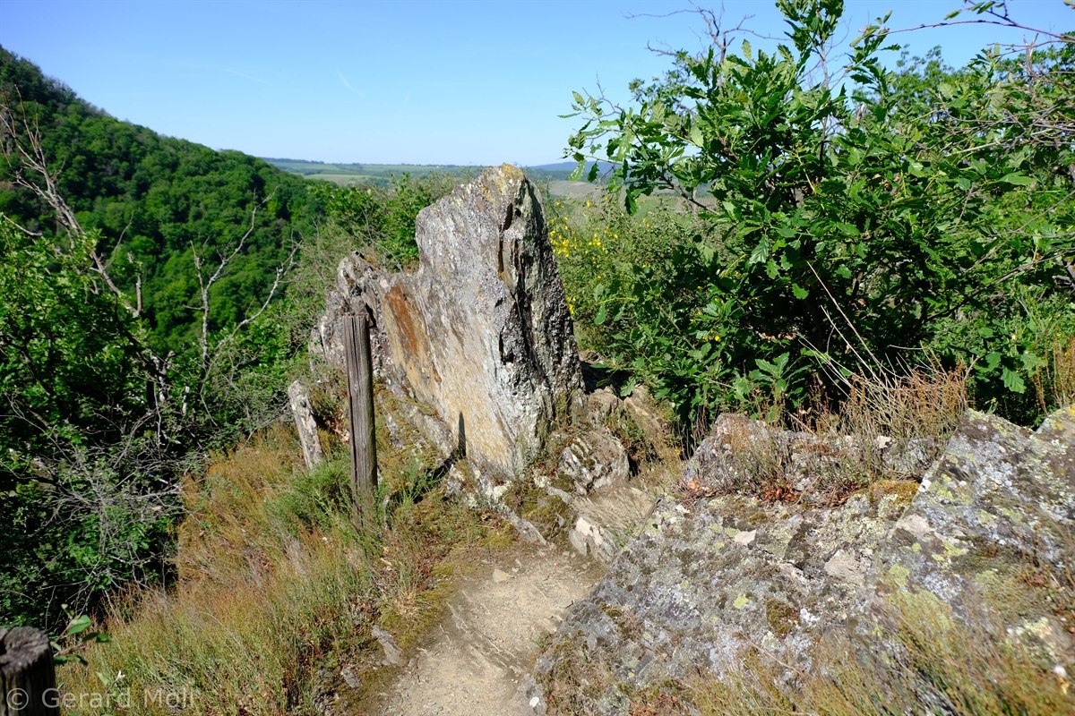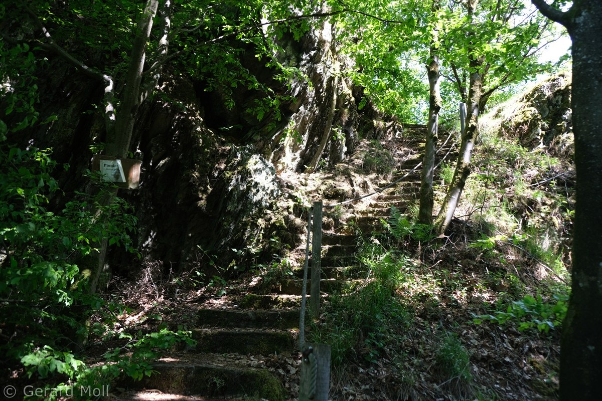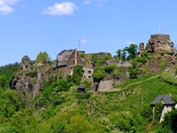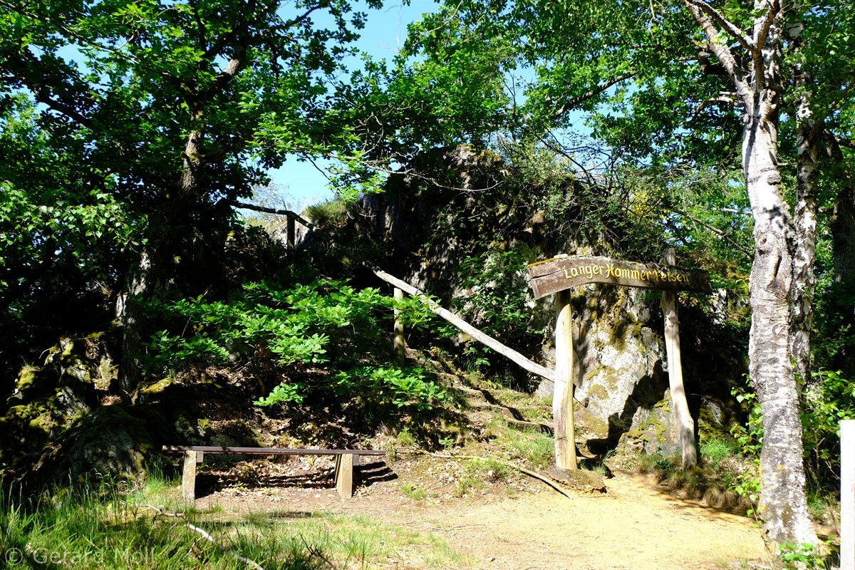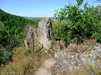 Von Veldenz steigt der gut markierte Weg auf die nördlichen Anhöhen. Tolle Aussichtspunkte wie der Runde Hammerfelsen, der Lange Hammerfelsen, der Dachslayfelsen und "Schau ins Land " bieten herrliche Rundblicke, immer wieder ist die Burg Veldenz zu sehen. Wir steigen zum Tiefenbach ab und kommen an der Kaffeemühle und der Thielenmühle vorbei. Die beeindruckenden Überreste der "Heidenmauer" erinnern daran, dass die Treverer hier eine Fliehburg unterhielten. Noch einmal heißt es einen längeren Anstieg in Angriff nehmen, aber die Aussichten vom Rittersturz und dem Pionierfelsen auf die Burg Veldenz entschädigen uns für die Mühe. Auf der Josephinenhöhe bietet sich ein traumhafter Blick auf Veldenz, dann geht es steil hinunter in den Ort.