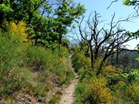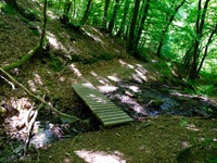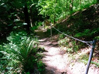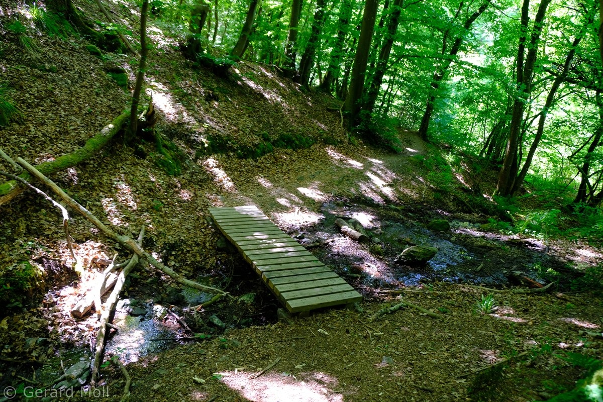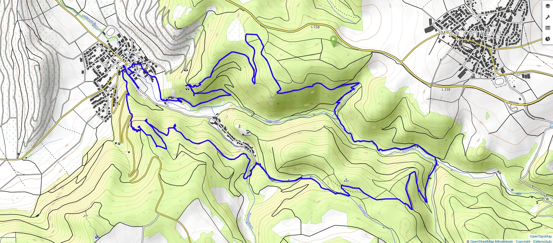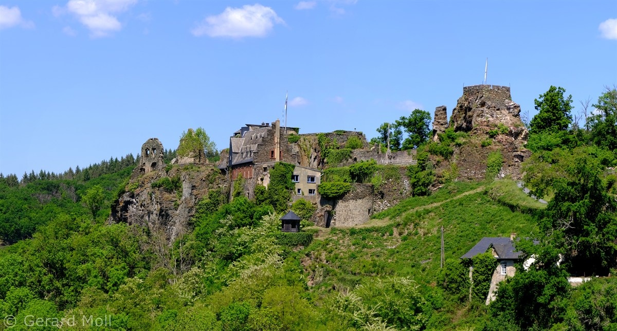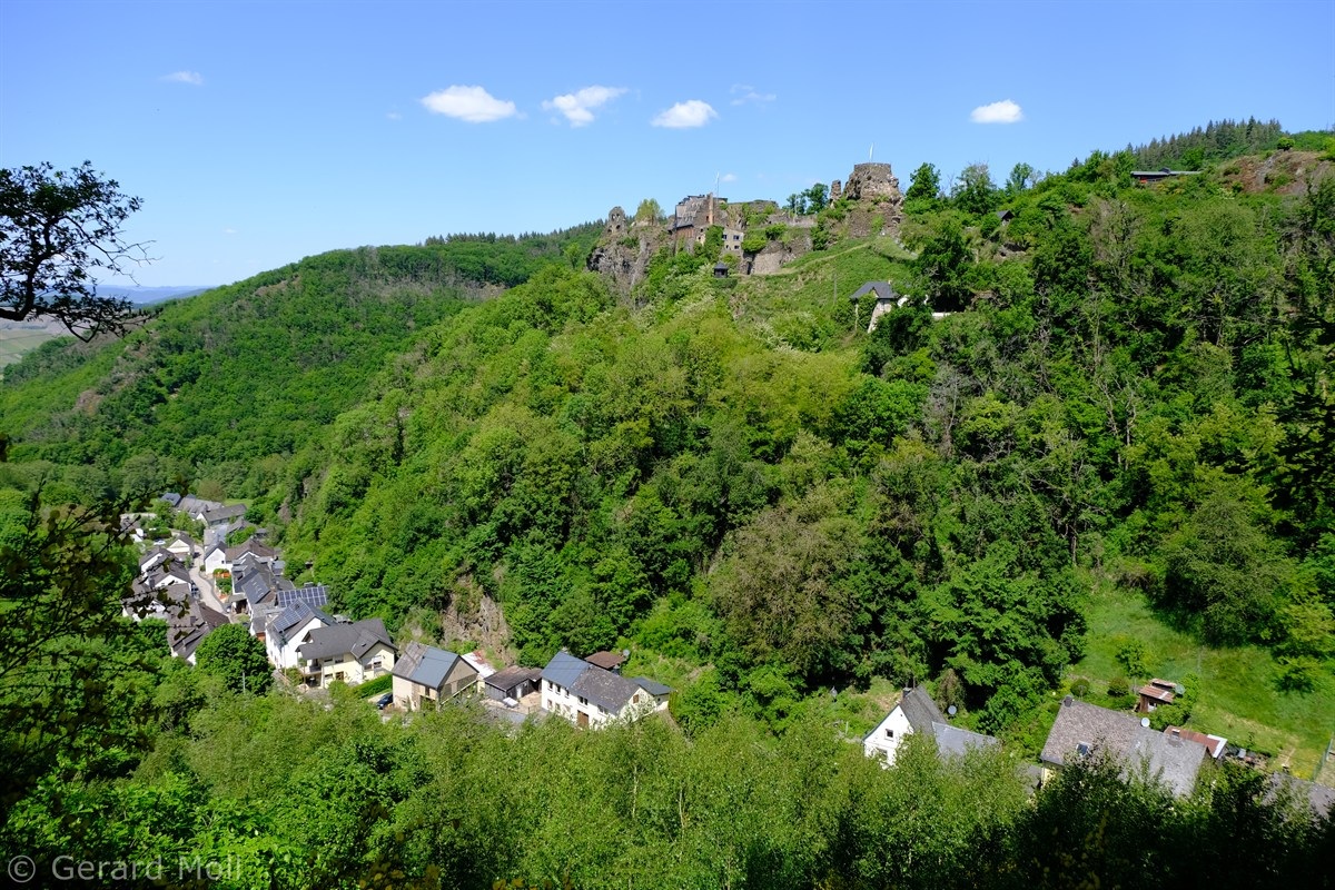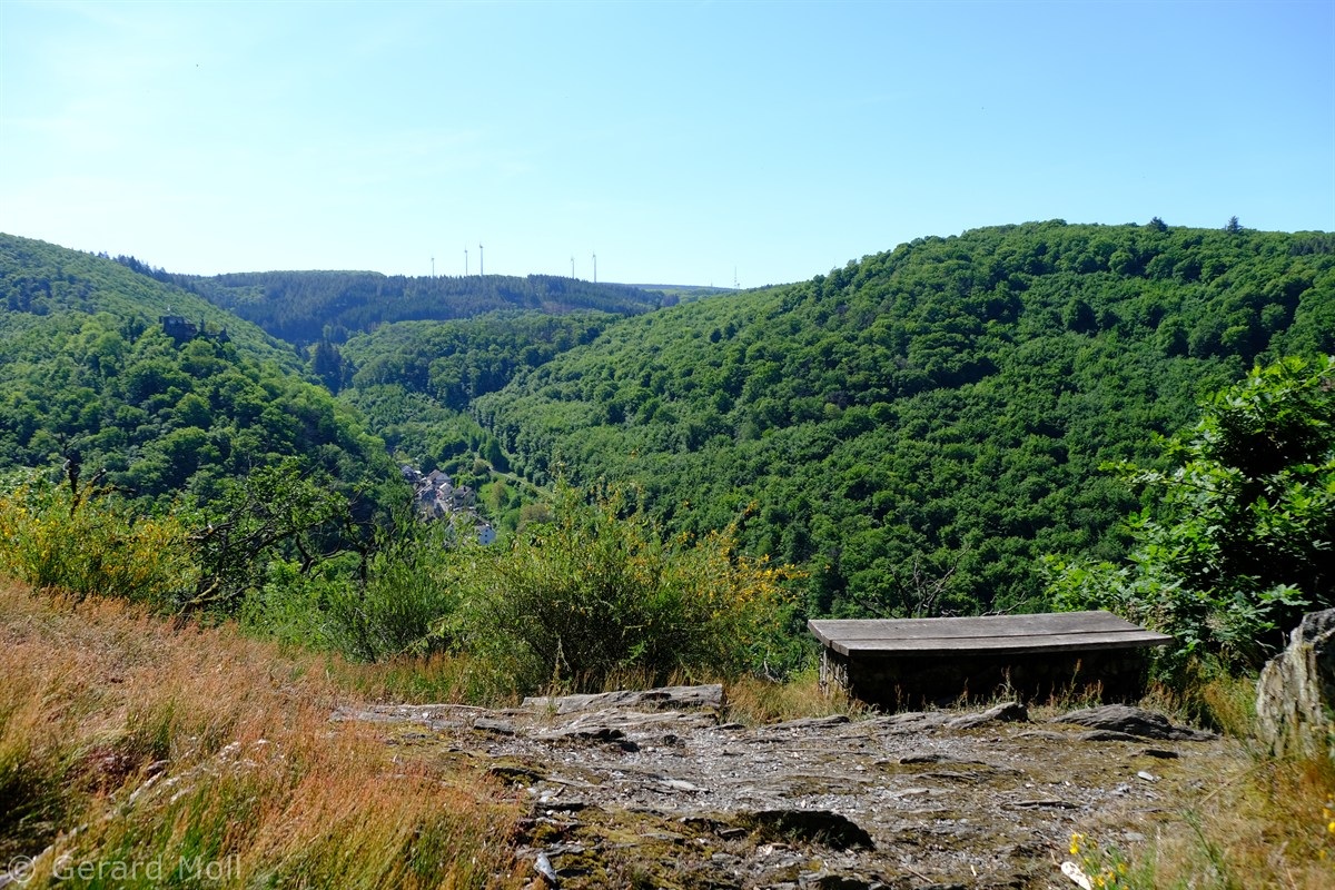 Von Veldenz steigt der gut markierte Weg auf die nördlichen Anhöhen. Tolle Aussichtspunkte wie der Runde Hammerfelsen, der Lange Hammerfelsen, der Dachslayfelsen und "Schau ins Land " bieten herrliche Rundblicke, immer wieder ist die Burg Veldenz zu sehen. Wir steigen zum Tiefenbach ab und kommen an der Kaffeemühle und der Thielenmühle vorbei. Die beeindruckenden Überreste der "Heidenmauer" erinnern daran, dass die Treverer hier eine Fliehburg unterhielten. Noch einmal heißt es einen längeren Anstieg in Angriff nehmen, aber die Aussichten vom Rittersturz und dem Pionierfelsen auf die Burg Veldenz entschädigen uns für die Mühe. Auf der Josephinenhöhe bietet sich ein traumhafter Blick auf Veldenz, dann geht es steil hinunter in den Ort.