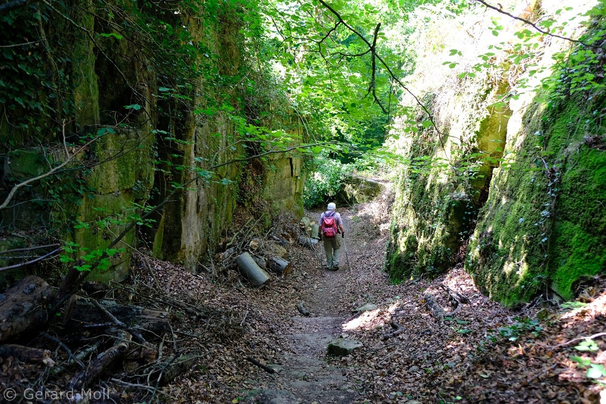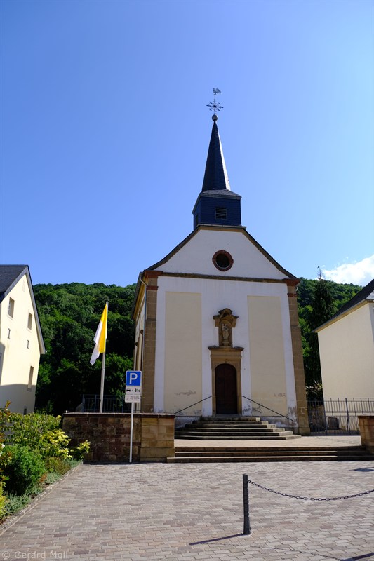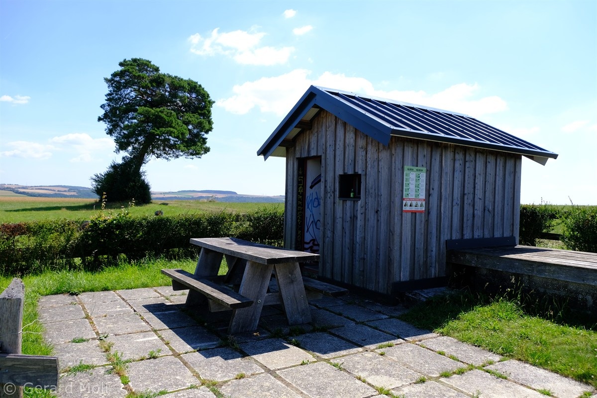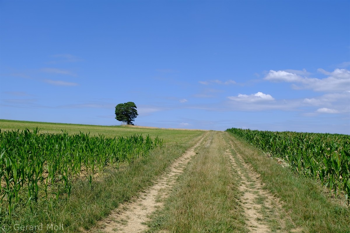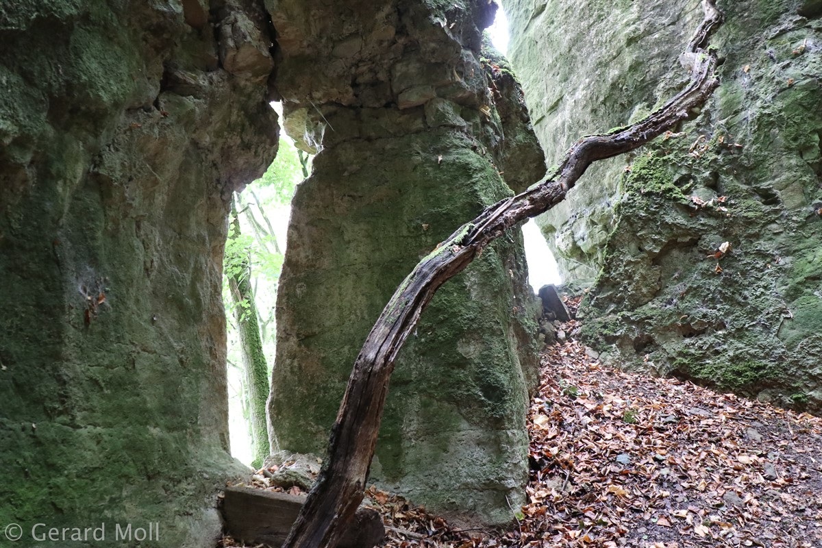 Wir parken in Steinheim bei dem "Centre d'intervention" und spazieren zuerst zur Kirche. Dann geht es, vorbei an der Mariengrotte und den "Gefale Leeën" hinauf zu den freien Feldern oberhalb des Ortes. Von der Unterstandshütte hat man einen herrlichen 360 Grad Panoramablick, der unter anderem bis nach Echternach reicht. An den interessanten Felsformationen der "Alkummer" vorbei erreichen wir dann wieder Steinheim.