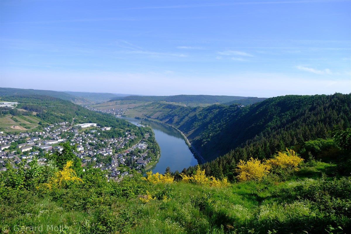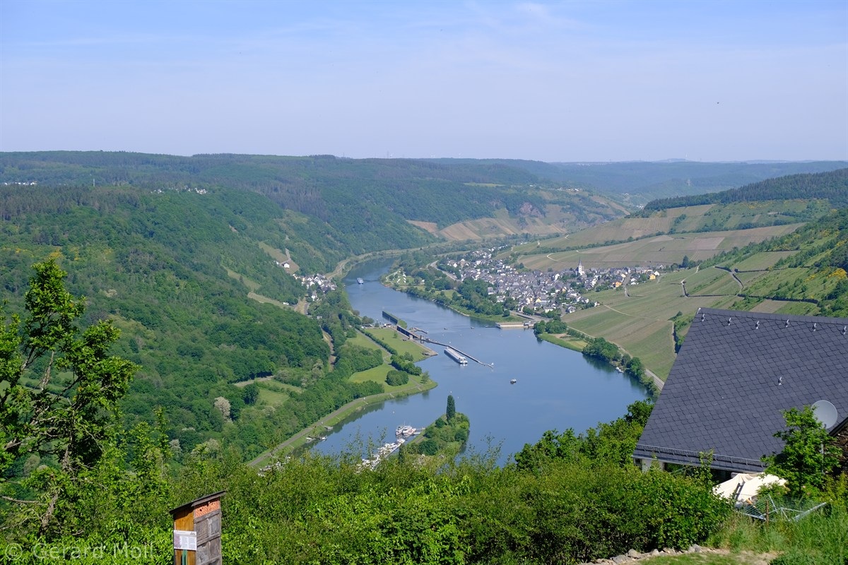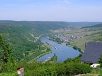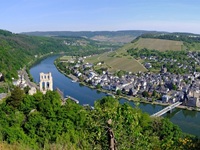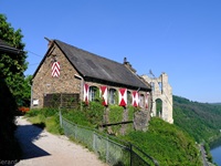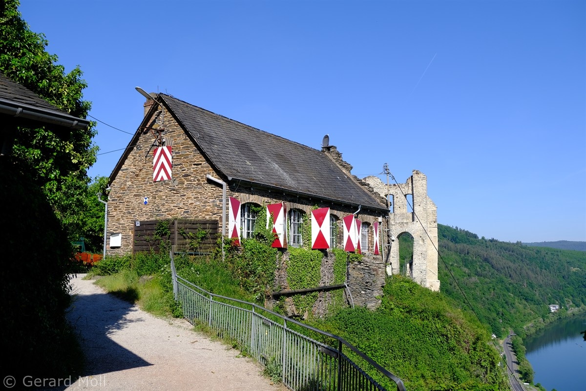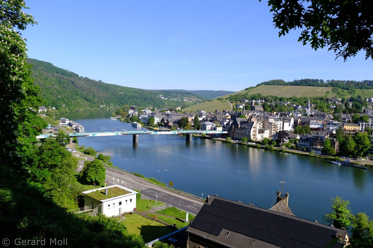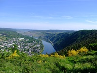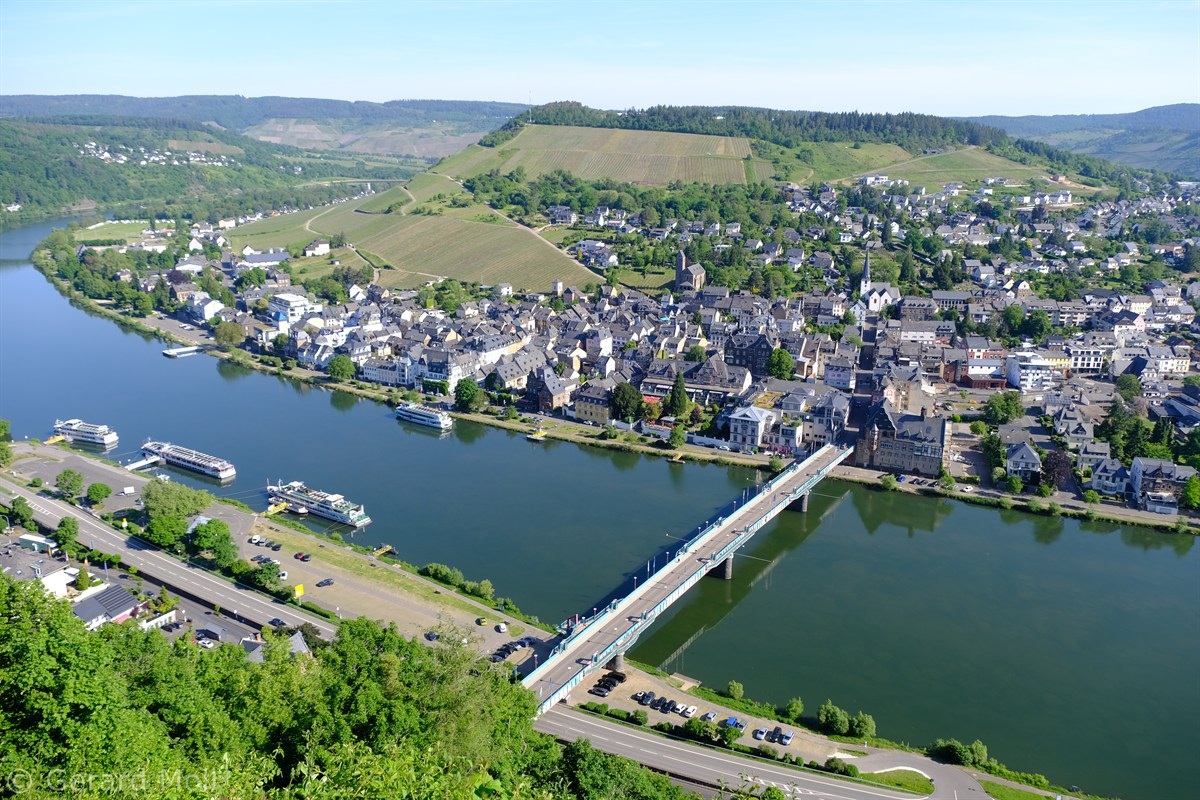 Vom Brückentor in Trarbach führt ein gut angelegter Serpentinenweg hinauf zu den Ruinen der Grevenburg. Nachdem wir den phantastischen Ausblick ausgiebig genossen haben, kraxeln wir den kurzen, gesicherten "Franzosensteig" hinauf auf den Schlossberg. Wir drehen eine Runde über das sonnige Hochplateau bis nach Starkenburg, wo sich uns eine großartige Aussicht auf Enkirch bietet. Durch Wald kehren wir zur Grevenburg zurück und steigen hinab zur Mosel.