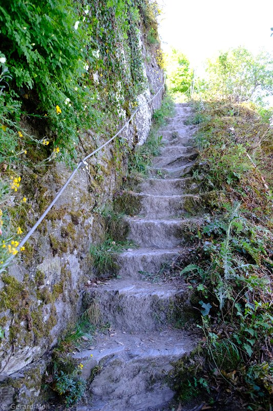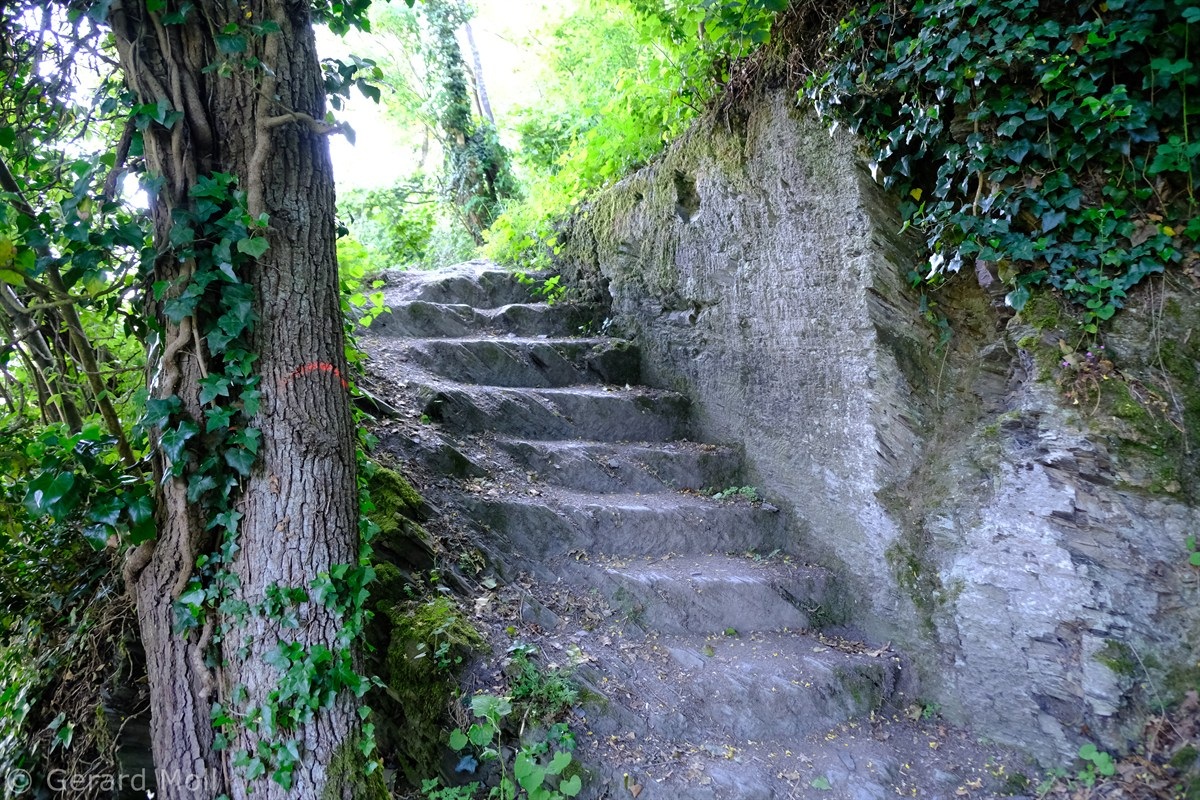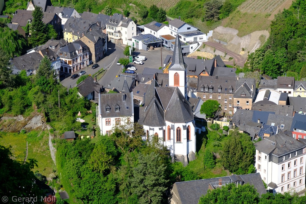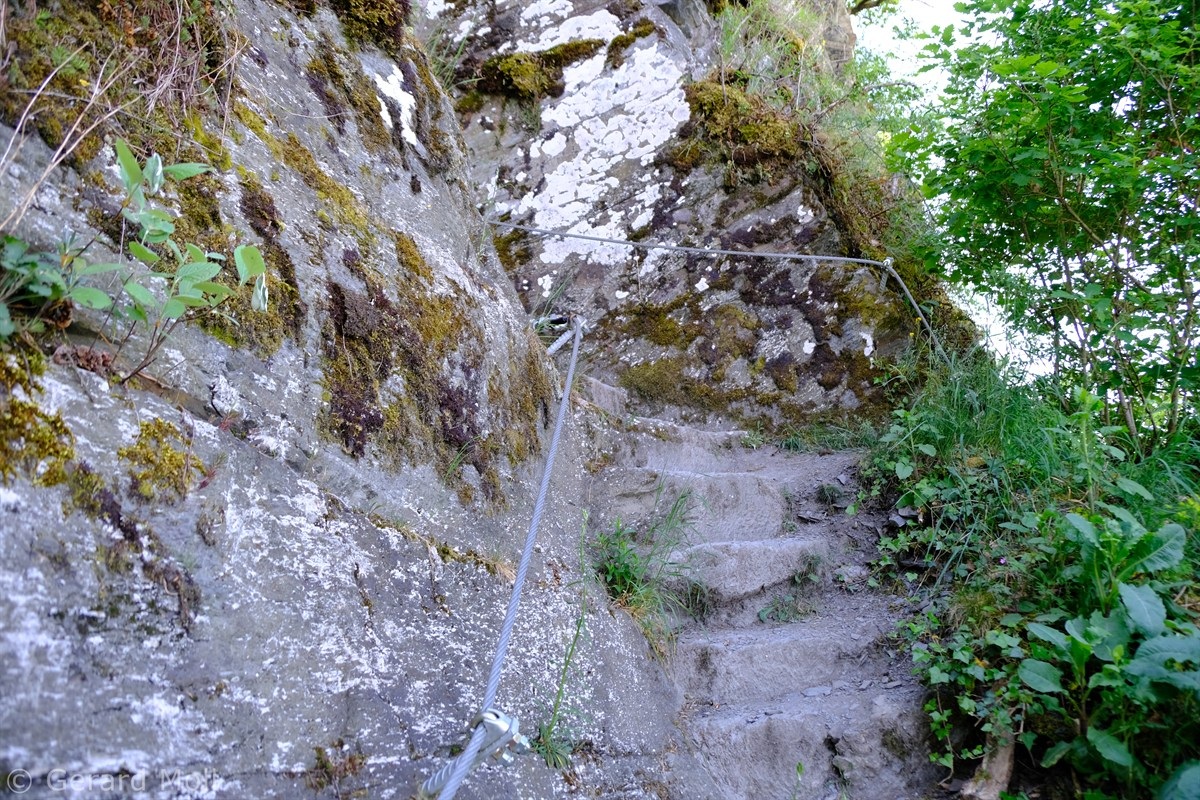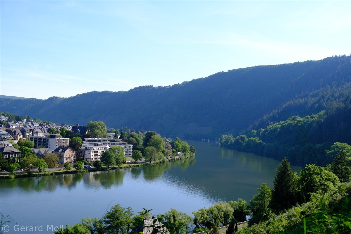 Vom Brückentor in Trarbach führt ein gut angelegter Serpentinenweg hinauf zu den Ruinen der Grevenburg. Nachdem wir den phantastischen Ausblick ausgiebig genossen haben, kraxeln wir den kurzen, gesicherten "Franzosensteig" hinauf auf den Schlossberg. Wir drehen eine Runde über das sonnige Hochplateau bis nach Starkenburg, wo sich uns eine großartige Aussicht auf Enkirch bietet. Durch Wald kehren wir zur Grevenburg zurück und steigen hinab zur Mosel.