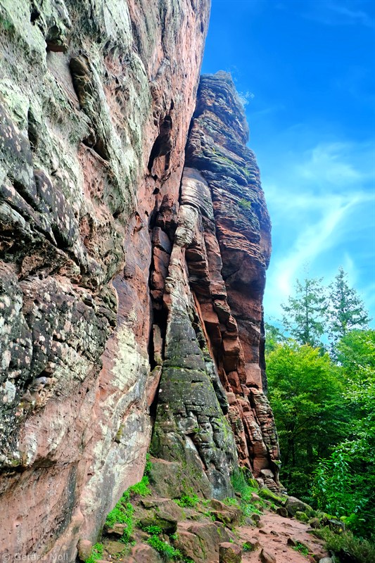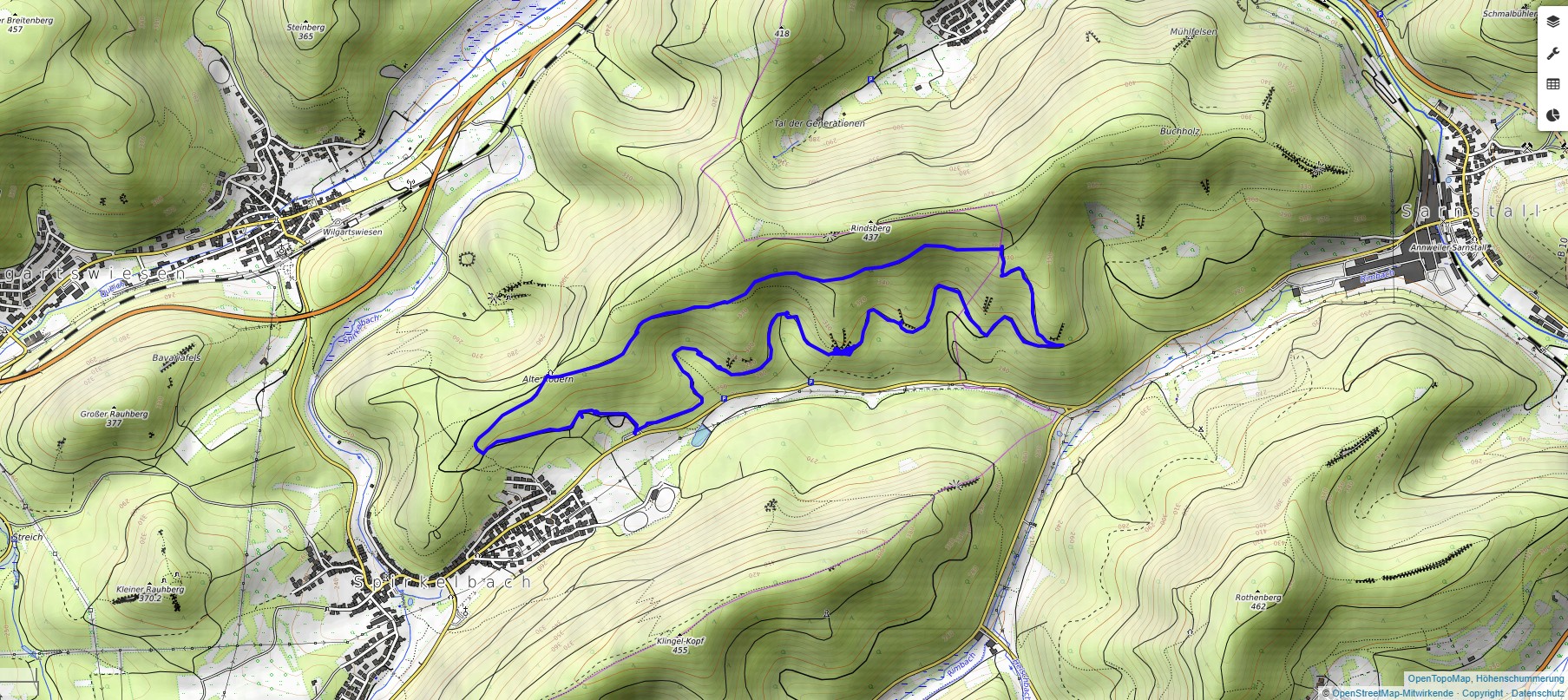 Dieses Teilstück des Spirkelbacher Höhenweges startet an einem Parkplatz hinter dem Ort Spirkelbach. Er führt an beindruckenden Felswänden vorbei, dann geht es hinauf auf die Höhe des Rindsberges und zurück zum Ausgangspunkt.